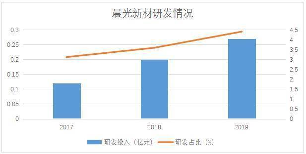 研发方面,功能性硅烷行业属技术密集型行业,研发技术能力是综合竞争力的核心要素,同时研发能力也是目前国内企业与跨国公司竞争的短板之一。截至2019年12月31日,晨光新材拥有研发人员79人,占总员工数比例为11.60%,此外研发投入及研发占母公司营收比均在报告期内增速较快。