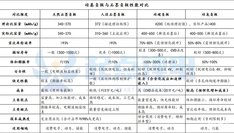 因此为满足市场需求,对石墨负极进行改性处理或复合其他材料,成为企业提高容量、增强循环稳定性、改善快充性能的主要方式。在此趋势下,硅基负极进入行业视野。